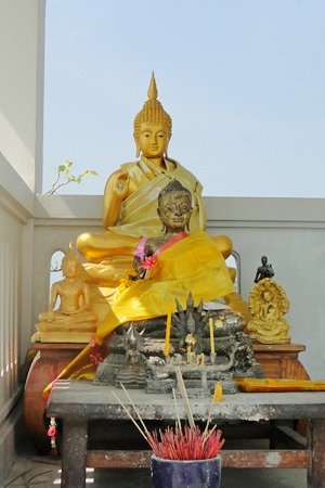 มณฑปรอยพระพุทธบาท อยู่สูงขึ้นไปบนยอดเขาเดียวกับศาลเจ้าพ่อเขาใหญ่ รัชกาลที่ 5 ทรงอัญเชิญมาประดิษฐานไว้ บนยอดเขา และที่นั้นยังมีเจดีย์ที่บรรจุพระบรมสารีริกธาตุ ทั้งสองนี้อยู่สูงสุดของสิ่งก่อสร้างทั้งหมดบนเกาะสีชัง อีกทั้งบริเวณนี้ยังเป็นจุดชมทิวทัศน์ทะเลได้โดยรอบ ซึ่งจะสามารถมองเห็นตัวเกาะสีชังทั้งเกาะ รวมถึงเกาะขามใหญ่ และทะเลกว้างไกล และต้นไม้น้อยใหญ่บนเขาแห่งนี้ |