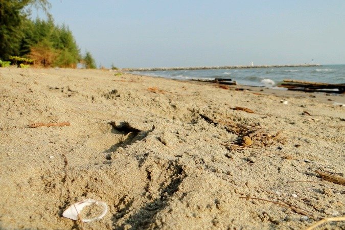 เป็นชายหาดที่ทอดยาวไปจนถึงแหลมแม่พิมพ์ ปัจจุบันเทศบาลตำบลปากน้ำประแสร์ได้ดำเนินการปรับปรุงภูมิทัศน์บริเวณชายหาด เพื่อรองรับนักท่องเที่ยวที่ได้มาเที่ยวชมแหลมสน และวัดที่มีความสำคัญทางประวัติศาสตร์ และได้พักผ่อนอาศัยพร้อมชมการดำเนินชีวิตประมงของชาวแหลมสน |
