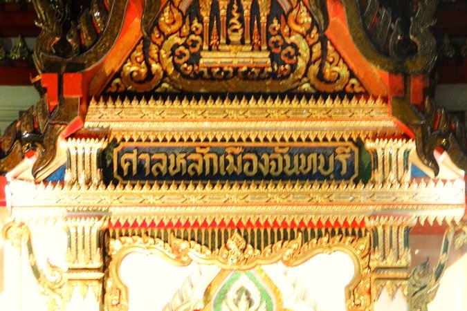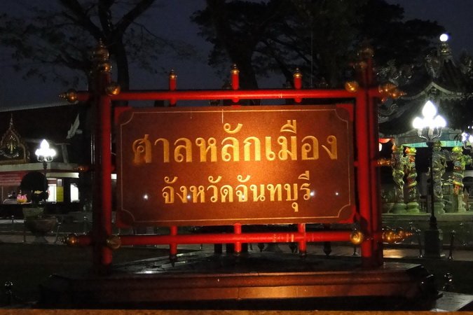ศาลหลักเมืองจันทบุรี หลังปัจจุบันตั้งอยู่ที่หน้าค่ายตากสินด้านซ้าย เป็นศาลหลักเมืองที่ตั้งขึ้นหลังจากย้ายเมืองมาจากบ้านหัววัง (ตำบลพุงทะลายเดิม หรือตำบลจันทนิมิตในปัจจุบัน) มาแล้ว ศาลดั้งเดิมคงจะสร้างด้วยศิลาแลงและได้ชำรุดทรุมโทรมไปจนต้นโพธิ์ต้นข่อยขึ้นปกคลุม และในที่สุดตัวศาลก็ไม่เหลืออยู่ศาลหลักเมืองซึ่งทางจังหวัดจันทบุรีได้กำหนดให้เป็นศาลหลักเมืองจันทบุรีปัจจุบัน ที่ได้มีการก่อสร้างศาล ฝังเสาหลักเมือง และหล่อองค์เจ้าพ่อขึ้นใหม่เพื่อให้สง่างามสมศักดิ์ศรีของเมืองโดยมีเจ้าพ่อหลักเมือง เป็นแท่งศิลาประดิษฐานภายในอาคารทรงไทยแบบจัตุรมุข ก่ออิฐถือปูน มีช่อฟ้า ใบระกา มีปรางค์ที่ด้านบนอาคาร มีบันไดทางขึ้นสี่ด้าน |