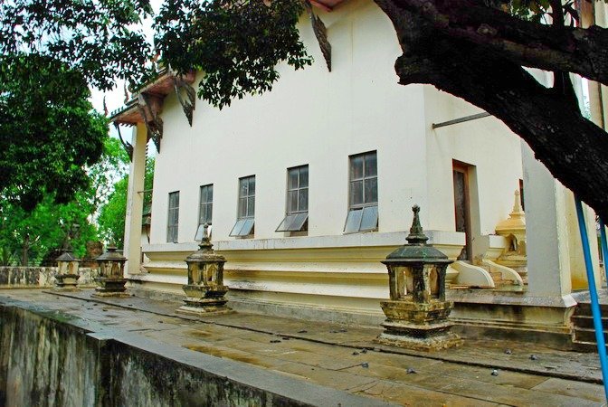 วัดใต้ต้นลาน สร้างขึ้นเมื่อปี พ.ศ. 2448 มีสถาปัตยกรรมฝีมือช่างท้องถิ่นที่น่าสนใจ ทั้งศาลาการเปรียญไม้เก่าแก่ เสาหงส์คู่ และปูนปั้นรูปยักษ์หน้าอุโบสถ พื้นอุโบสถปูด้วยกระเบื้องกังไสเก่าแก่ของจีน และมีหอไตรกลางน้ำสร้างด้วยไม้สัก ภายในจะพบ หอพระไตรปิฎกกลางสระน้ำ เป็นหอพระไตรปิฎกที่ใช้เสาไม้ ๑๒ ต้น สร้างอยู่ในสระน้ำ หลังคามุงกระเบื้องมีช่อฟ้างดงาม มีรูปแบบเป็นเอกลักษณ์งดงาม นับเป็นสถาปัตยกรรมอันทรงคุณค่าที่แสดงให้เห็นถึงภูมิปัญญาในด้านสถาปัตยกรรม และภูมิปัญญาในการเก็บรักษาพระไตรปิฎกให้พ้นจากการทำลายของมดปลวก กรมศิลปากรได้ประกาศขึ้นทะเบียนเป็นโบราณสถาน ในราชกิจจานุเบกษา เล่ม 106 ตอนที่ 26 เมื่อวันที่ 14กุมภาพันธ์ พ.ศ. 2532 |